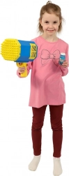 Denne sæbeboblepistol til børn forvandler enhver eftermiddag til et regnbueshow. Den kompakte størrelse på 22 cm, ergonomiske greb og let plastkonstruktion sikrer en behagelig håndtering selv for mindre børn. Det flerdyse hoved skaber en strøm af glitrende bobler, som glæder både små og store.