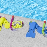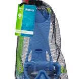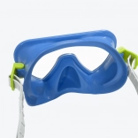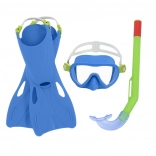 Dette snorkelsæt indeholder blå maske, finner og snorkel og er et glimrende valg til børns vandlege. Masken er udstyret med UV-beskyttende linser og en blød kant, som sikrer en komfortabel og tæt pasform til ansigtet og forhindrer vand i at komme i øjnene.