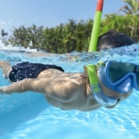 Snorklen med tørtrubeteknologi sikrer, at vand ikke kommer ind, og holder barnet trygt under dets undervandsopdagelser.