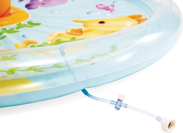 Oppustelig børnepool med bruser 173 × 101 cm, kapacitet 166 l. Tilslutning til haveslange for vandfontæne, sjovt design, reparationslap medfølger.