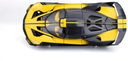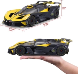 Oplev en tro kopi af den revolutionerende supersportsvogn BUGATTI BOLIDE i præcis udførelse. Die-cast metalkarrosseri, realistiske proportioner og kontrasterende gul-sort lakering understreger de aggressive aerodynamiske linjer, som får modellen til at skille sig ud i enhver samling.