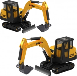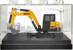 Modellen af bæltegravemaskinen er anbragt i en gennemsigtig emballage, der minder om en byggeklods. Denne innovative løsning muliggør sammenlægning af emballager med andre modeller til forskellige konstruktioner. Med kompakte dimensioner er denne model både praktisk og præcist udført.