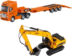 Sættet inkluderer en traktor med lavprofileret anhænger og gravemaskine, hvilket giver flere muligheder for leg og realistisk simulering af transport af tunge maskiner. Lastbilen har bevægelige dele og rampen kan sænkes for at laste og losse køretøjet svarende til ægte transportarbejde.