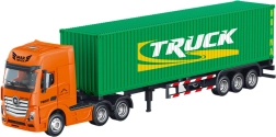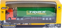 Lastbil med containertrailer i skala 1:50 er en meget detaljeret model, der realistisk efterligner ægte transportkøretøjer. Det er et ideelt supplement for samlere og børn fra 8 år, der vil lege og udvikle kreativitet.