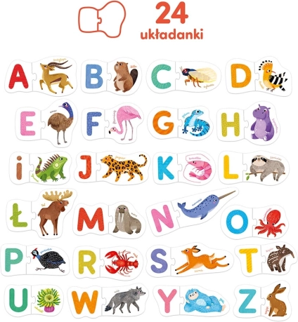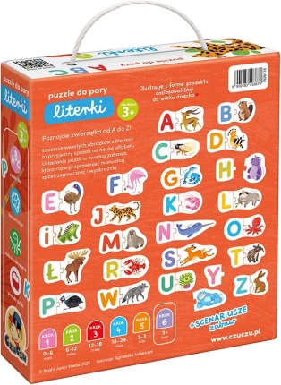 Oplev et sjovt læringssæt med 24 store todelte puslespil, der forbinder søde dyr med alfabetets bogstaver. Underviser og underholder, udvikler finmotorik, opmærksomhed og de første skridt til læsning og skrivning. Der medfølger også en guide med legeidéer.