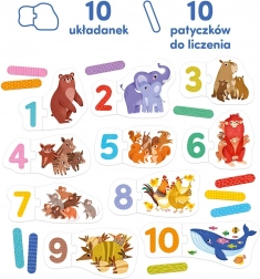 Leg med puslespillene understøtter udvikling af ordforråd, fantasi og visuel perception. Børn kan navngive dyrene, finde på historier og lede efter tal i deres omgivelser. Sættet er et godt udgangspunkt for at lære at tælle til 10 og de første forsøg på at skrive tal.