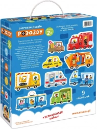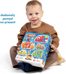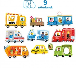 I sættet finder du forskellige kendte køretøjer – ambulance, taxi, skraldebil, brandbil, autohjælp, sporvogn og flere. Unikt element: brikkerne med figurer kan flyttes frit mellem de enkelte puslespil og skabe nye historier og situationer.