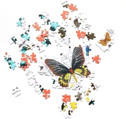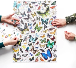 Opdag forskellige, både små og store, velkendte og eksotiske arter af vidunderlige sommerfugle fra hele verden. Puzzlove Sommerfugle med 1000 brikker er et fremragende valg for dem, der vil have det sjovt, slappe af i godt selskab og holde hjernen i form.