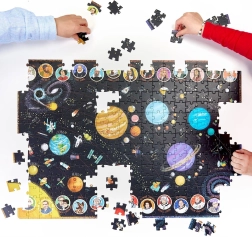 Træd ind i videnskabens verden med vores spændende Puslespil Opdagelsesrejsende. Dette sæt indeholder 300 brikker, der repræsenterer planeter, måner, rumskibe, videnskabsmænd og opdagelser i Solsystemet.