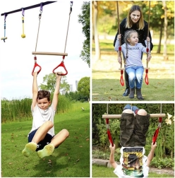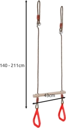 Denne gynge fra mærket Kruzzel er 2i1, der fungerer som både gynge og gymnastiktrapez. Lavet af robuste materialer, modstår den intensiv brug og vejrforhold. Solid konstruktion og robuste reb sikrer langvarig stabilitet og sikkerhed.