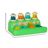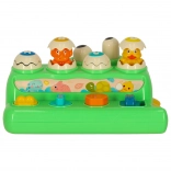 Dette interaktive spil sikrer underholdning ved at kombinere elementer af færdigheder, uddannelse og bevægelse. Barnets opgave er først at trykke på en speciel knap, som får et dyr til at springe op, og derefter slå det tilbage med hammeren. Børn morer sig, samtidig med at de lærer tålmodighed og koncentration.