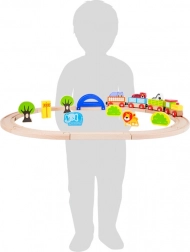 Skinnedelene er kompatible med populære træ-togbaner på markedet, så du kan udvide sættet efter behov. Omhyggelig udførelse i træ og glatte kanter sikrer sikker leg, mens de klare farver indbyder til gentagne opdagelser.