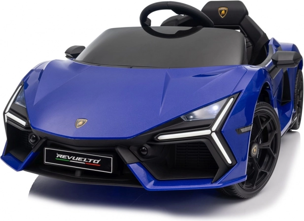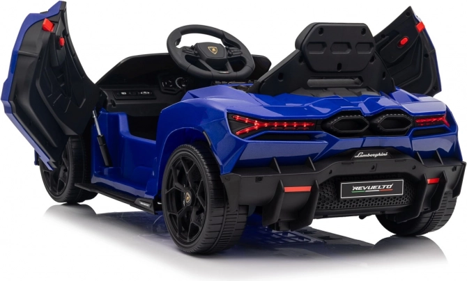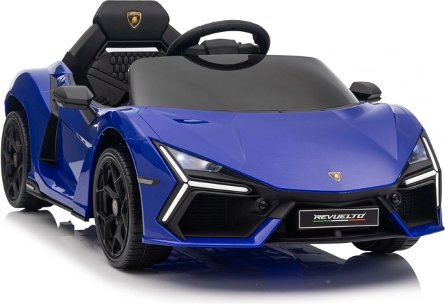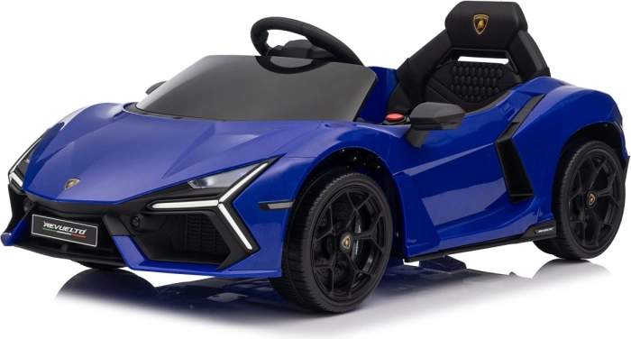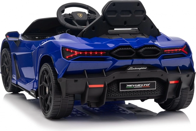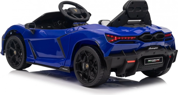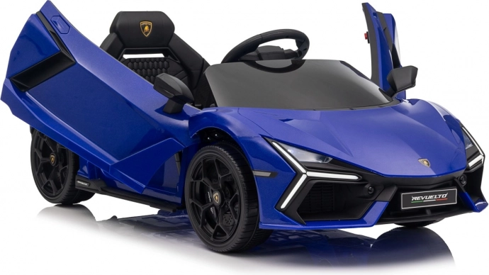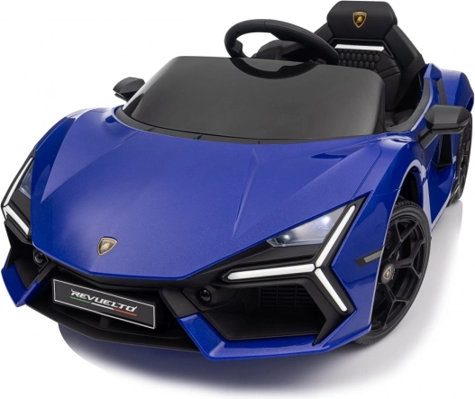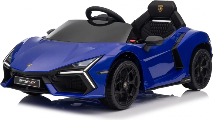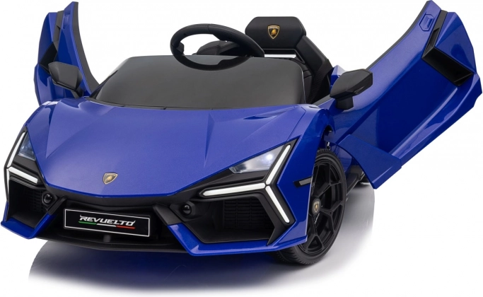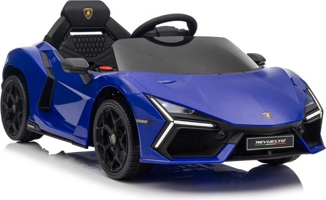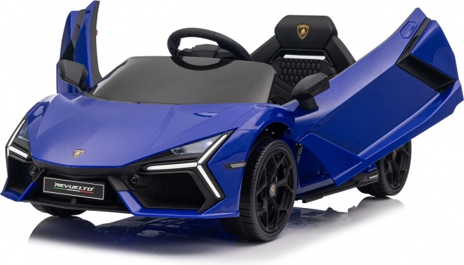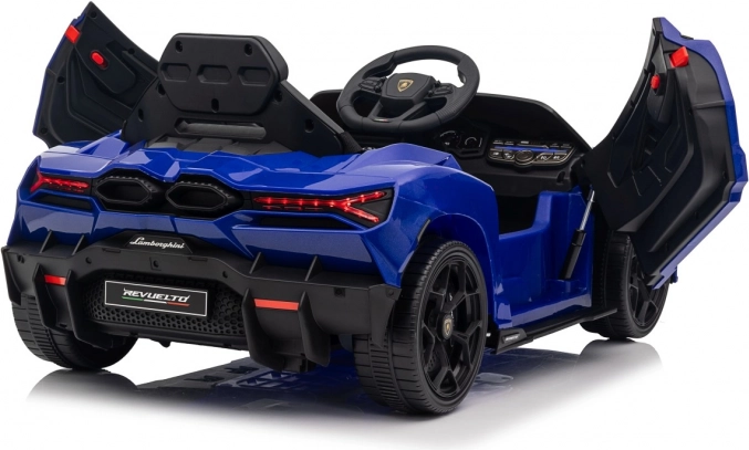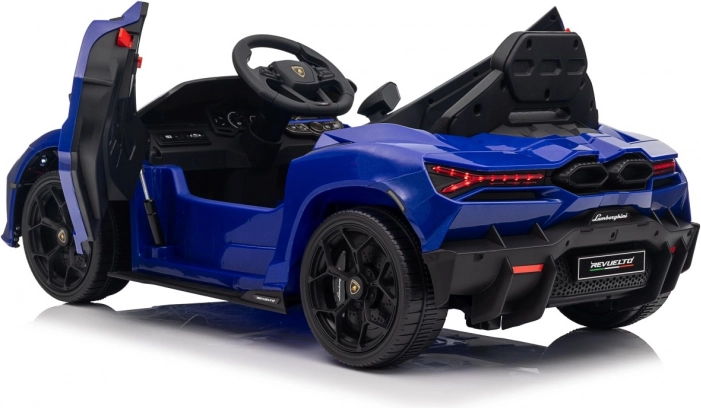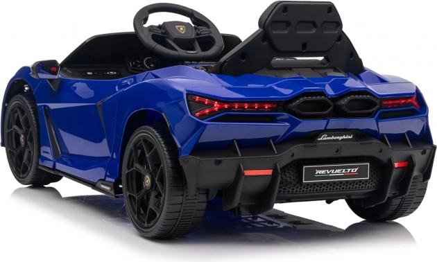 Bilen er designet efter den ægte LAMBORGHINI Revuelto: skarpe linjer, aerodynamiske former, autentisk logo og sakse-døre. LED-forlygter og baglygter forstærker den realistiske oplevelse.
