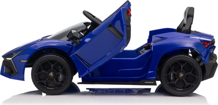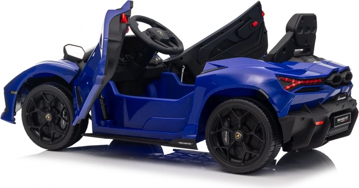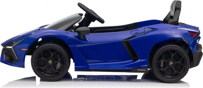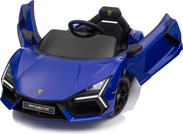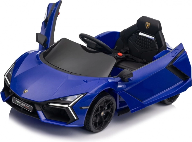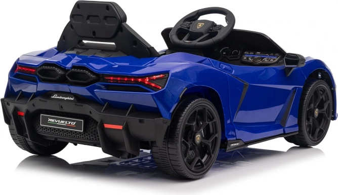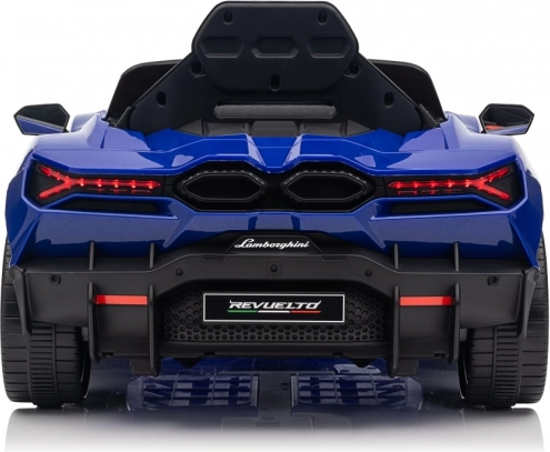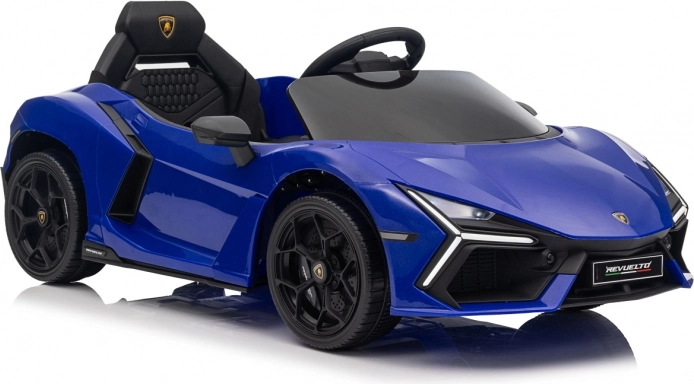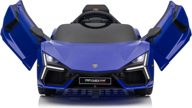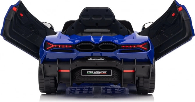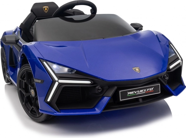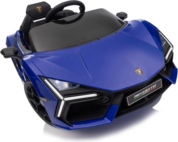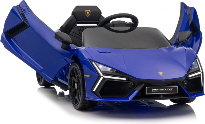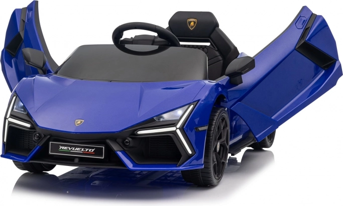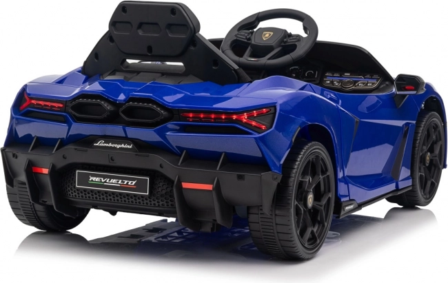 Bilen er designet efter den ægte LAMBORGHINI Revuelto: skarpe linjer, aerodynamiske former, autentisk logo og sakse-døre. LED-forlygter og baglygter forstærker den realistiske oplevelse.