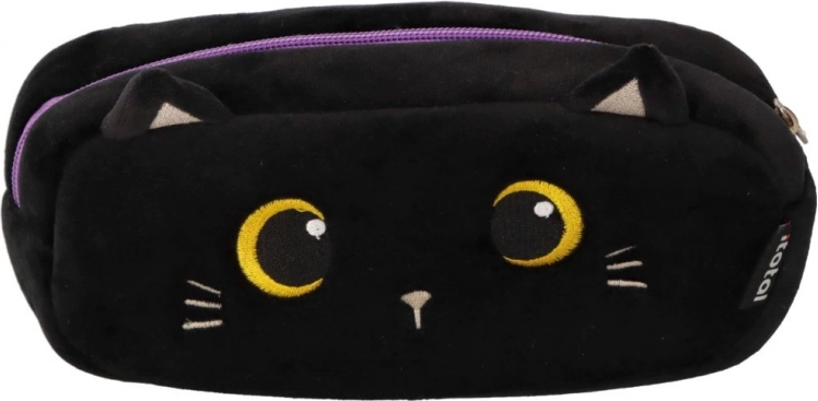 Dette elegante penalhus i designet af en sort kat kombinerer et sødt udseende med praktisk anvendelse. Den bløde tekstile overflade beskytter indholdet, de markante gule øjne og de gennemarbejdede broderede detaljer giver penalhuset en unik karakter. Den kompakte form passer i enhver rygsæk eller håndtaske.