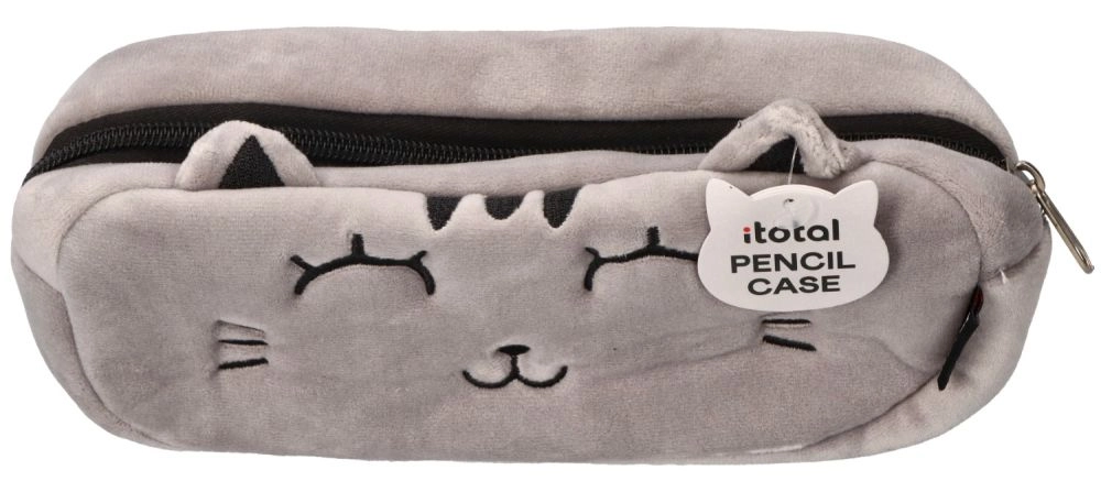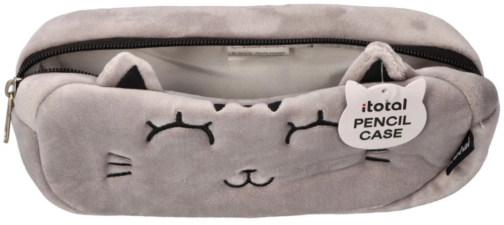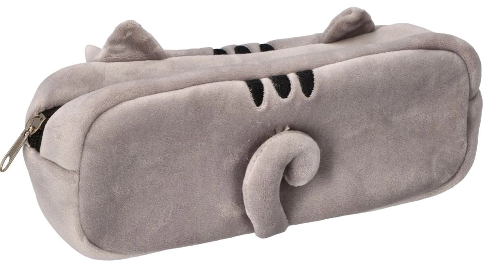 Dette grå plysbetrukne penalhus med kattemotiv imponerer med blødt materiale, broderede detaljer og søde ører. Takket være de kompakte mål passer det nemt i skoletasken, og den pålidelige lynlås holder dine skriveredskaber sikkert samlet.