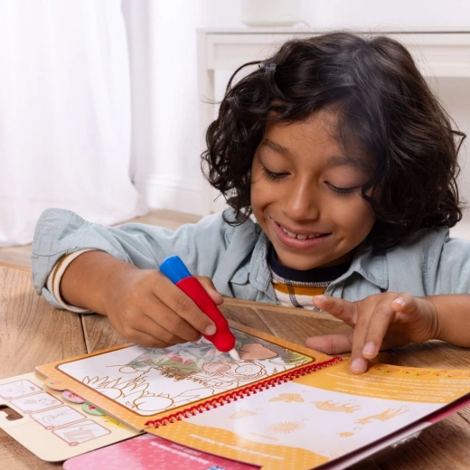 De duftende vandmalebøger Water WOW! giver børn kreativ underholdning uden farver og pletter. Når siderne bliver våde, farvelægges frugtmotiverne med det samme, og når de tørrer, forsvinder farverne igen, så de kan bruges om og om igen. Den kompakte spiralblok med den medfølgende vandpen er en fantastisk rejsemakker.