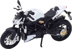 Takket være de funktionelle elementer som roterende hjul, drejeligt styr og dæmpet affjedring kan du nemt simulere realistisk kørsel og manøvrering. Modellen tager sig flot ud på hylden, skrivebordet eller i vitrinen og er en fremragende gave til alle motorcykelentusiaster.