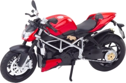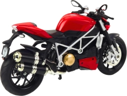 Denne røde sportmotorcykel i skala 1:12 imponerer med præcise detaljer og solidt håndværk. Takket være metalkroppen og plasttilbehør fremstår den realistisk og tager sig flot ud på hylden, skrivebordet eller i vitrinen. Integrerede lys og lyde drevet af AG13-batterier forstærker følelsen af ægte kørsel.