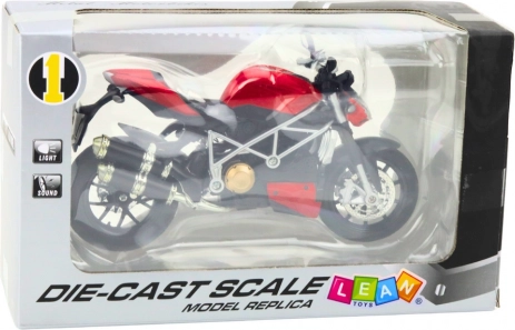 metal sportmotorcykel 1:12, rød med lys og lyde