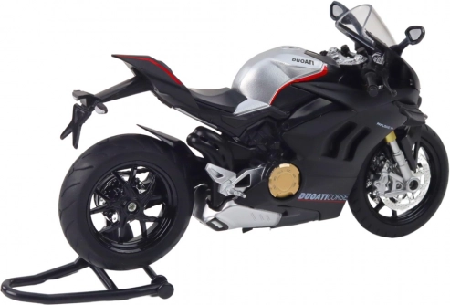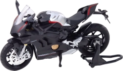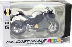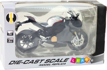 Realistisk metalmodel af en sportsmotorcykel i skala 1:12 glæder både samlere og børn. Den byder på lyseffekter og lyde, roterende hjul, styrbare håndtag og affjedring. Solidt metalhåndværk med plastdetaljer og et elegant sort design inspireret af racermaskiner giver en autentisk legeoplevelse og et flot indslag på hylden.