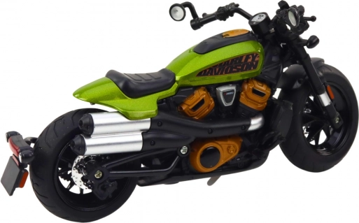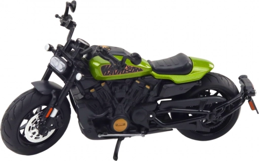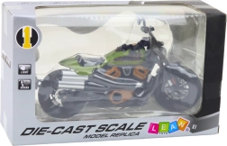 Realistisk metalmodel af en chopper i skala 1:12, der vil glæde både samlere og motorcykelentusiaster. Den byder på detaljeret udførelse, metalkonstruktion med holdbare plastdele, lys- og lydeffekter, dreiende hjul, styrbare styr og fjedrende affjedring. Det elegante sorte design med grønne accenter tager sig flot ud på hylde, bord og i vitrine.
