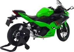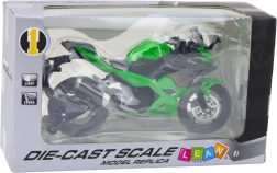 Metalmodellen af sportmotorcyklen er udstyret med realistiske elementer som drejeligt styr, affjedret ophæng og roterende hjul, der muliggør simulering af ægte kørsel og manøvrering. Motorcyklens detaljer, herunder det aerodynamiske design og den grønne farve inspireret af klassiske racermodeller, giver modellen et autentisk præg.