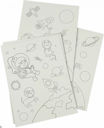 Opdag kreativ underholdning for små opdagelsesrejsende! Denne skrabe-malebog med rumtema byder på 9 farverige billeder, som kommer frem, når det sorte lag skrabes af med en træspatel. Ideel til at styrke finmotorik, kreativitet og tålmodighed. Certificeret CE, i overensstemmelse med EN71, egnet til børn fra 3 år.