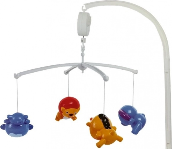 Berlolig baby og støt dets udvikling med denne farverige sengemobile med fire dyr. Takket være den mekaniske spilledåse uden behov for batterier drejer legetøjet blidt rundt og skaber en behagelig melodi. Mobilen har sikker fastgørelse til sengen, en lang arm for korrekt afstand fra ansigtet og hængelegetøj med raslende kugler til stimulering af hørelse og syn.