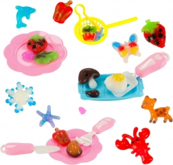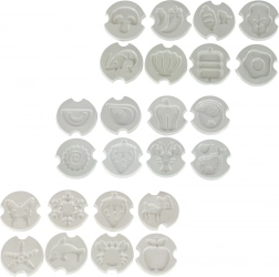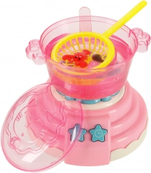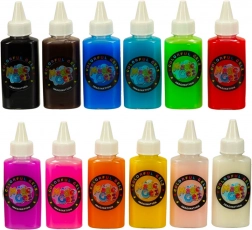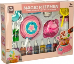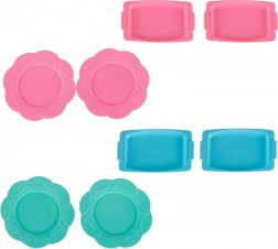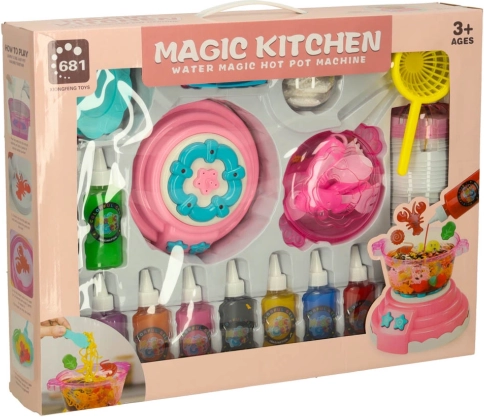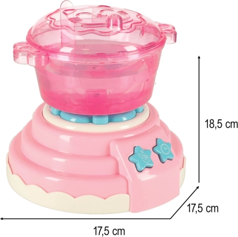 Pakkens indhold: Sættet indeholder 12 flasker gel i forskellige farver, 24 forme, et bæger med calciumlaktater, 4 tallerkener, 4 bakker, 2 si, 2 pincetter, 1 kop med låg til interaktive lege og mere.