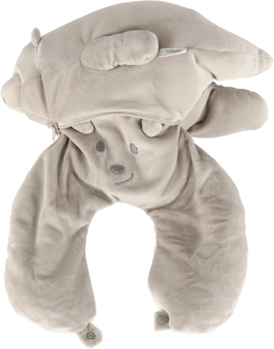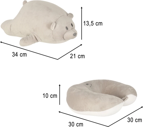 Denne praktiske 2-i-1 rejsepude er ideel til både børn og voksne, der søger komfort på rejsen. Puden forvandles nemt til en plysbjørn, som er dejlig at kramme. Den giver fremragende støtte til nakke og hoved takket være den ergonomiske form og den lette fyldning af polystyrenkugler.