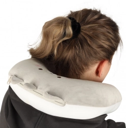 Puden er designet for maksimalt komfort for dine børn, hoved- og nakkestøtte sikres gennem ergonomisk form, der bidrager til korrekt kropsholdning. Kompakt design muliggør nem transport, uanset om det er i en rygsæk eller direkt fastgjort til bagagen med den praktiske klips.