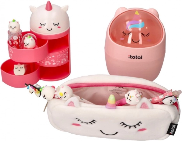 Design i blide rosa nuancer med en smilende enhjørning glæder både børn og voksne. Organiseren er en oplagt idé til en original gave og et praktisk tilbehør til daglig organisering.