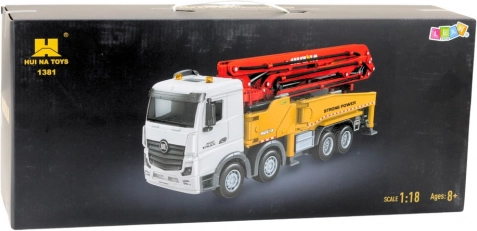 RC betonpumpemixer HUI NA bringer maksimal realisme til legen. Med den lange, fleksible udlæggerbom simulerer den nemt pumpning af beton i højden, med mulighed for løft, sænkning og rotation af armen. Styring på 2,4 GHz sikrer stabil rækkevidde uden interferens, selv når flere RC-modeller kører samtidig.