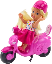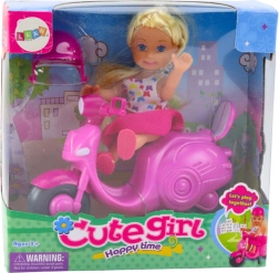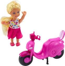 Dukken med en højde på 11 cm har langt blond hår og et sødt outfit. Scooteren er lavet af holdbar plast, udstyret med bevægelige hjul og spejle. Sættet inkluderer også en pink hjelm, som sikrer sikkerhed under kørslen og giver ekstra realisme.