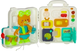 Styrk dit barns færdigheder med denne Montessori sanseplade, der kombinerer leg og læring i et praktisk kuffertformat. Pladen er designet til at stimulere barnets sanser og støtte finmotorik samt logisk tænkning.