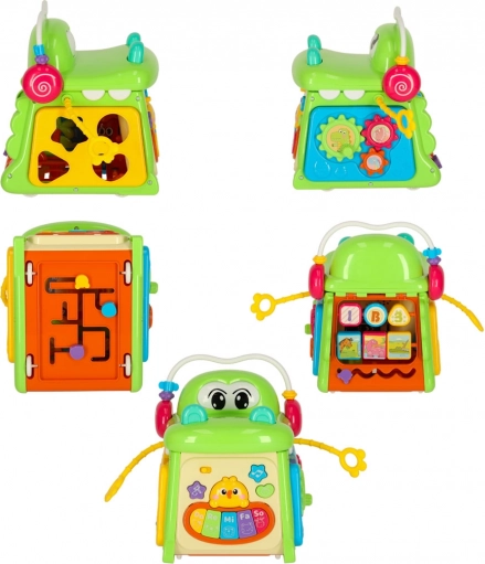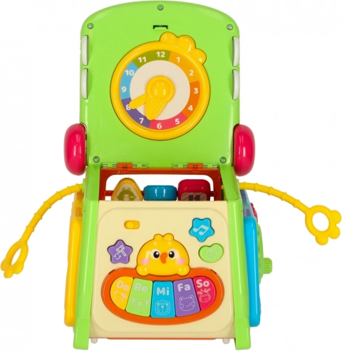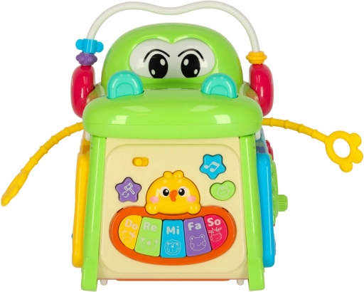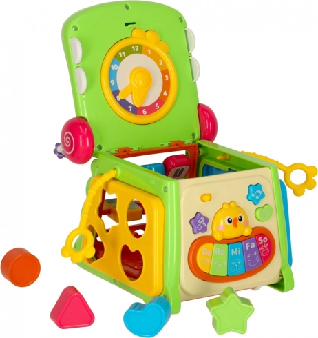Denne smarte og sikre legeting understøtter barnets udvikling på en naturlig måde. Under legen træner børn finmotorik, logisk tænkning og øje-hånd-koordination, når de indsætter former, trykker på knapper, drejer elementer og følger lys- og lydeffekterne fra klaveret. Konstruktionen med afrundede kanter og praktisk håndtag er tilpasset små hænder.