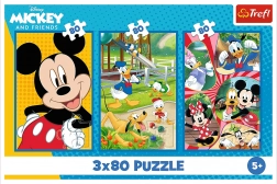 Denne puslespilssæt giver børn mere glæde og variation – tre forskellige billeder med de populære figurer fra Disneys verden MICKEY MOUSE. Takket være de mindre mål på de færdige billeder og 80 brikker per puslespil er produktet ideelt til yngre byggere, som træner tålmodighed, koncentration og finmotorik.