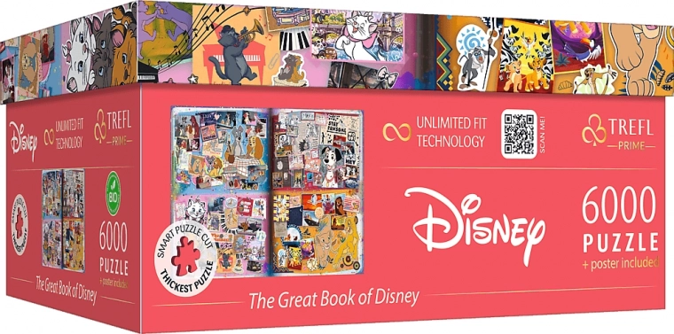 Oplev den unikke “Den store DISNEY-bog” som et storformat-puslespil, der samler ikoniske figurer og scener i én betagende mosaik. Med TREFL Unlimited Fit Technology (UFT) kan du forbinde de enkelte motiver (4×1500 brikker) og skabe din egen layout, eller følge den anbefalede komposition.