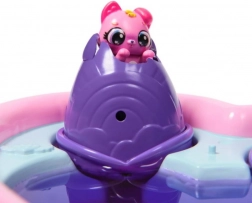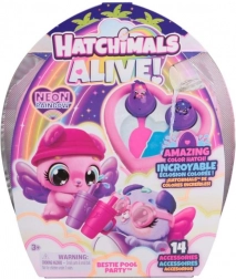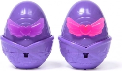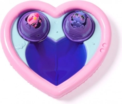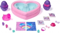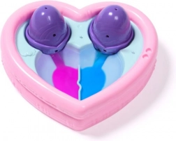 Sænk æggene ned i hjertebassinet, fjern vingerne, og hæld langsomt vand på – når begge halvdele af hjertet har skiftet farve, klækkes dine Hatchimals. Tilsætter du mere vand, flyder farverne sammen til lilla og giver et iøjnefaldende neonlook. Den magiske udklækning i vand med farveskifte gør hver leg til en unik oplevelse.