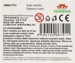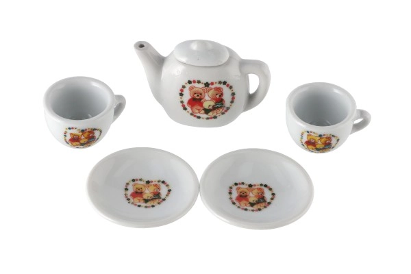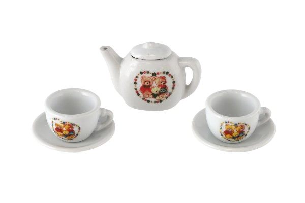 Sættet indeholder tekande, kopper og underkopper med søde motiver af bamser og dyr, som fanger opmærksomheden med det samme. De kompakte mål 18 × 11,5 × 3,5 cm gør det nemt at opbevare og tage med.