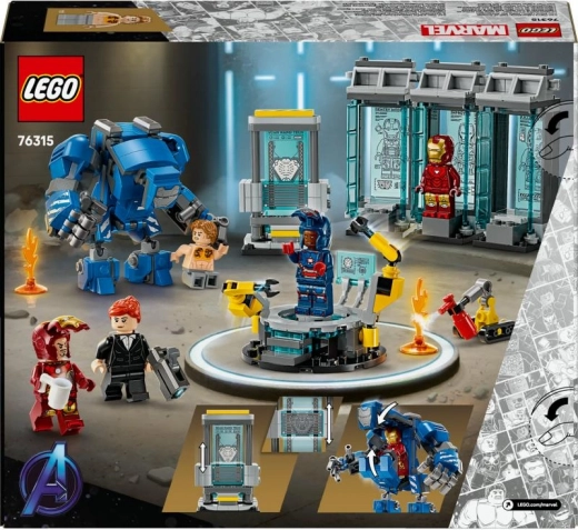 Byg det ikoniske IRON MAN-rustkammer med gennemsigtige blå kapsler, hvor tre berømte dragter kommer til deres ret. For action står den artikulerede mech Igor MK3 med cockpit til en minifigur, et par robotarme på serviceplatformen og en scanner til diagnostik. Sættet er ideelt til at genskabe filmscener og til stilfuld udstilling.