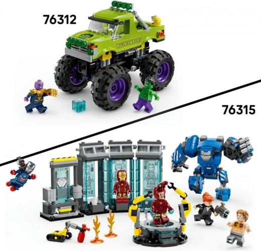 LEGO MARVEL monstertruck Hulk vs Thanos (76312) er et actionfyldt byggesæt til børn fra 7 år, som byder på en kæmpe monstertruck med affjedring, minifigurer af Hulk og Thanos samt ikoniske tilbehør som Tesseract og Infinity-handsken. Et fremragende valg til fans af Avengers, store biler og kreativt byggeri.