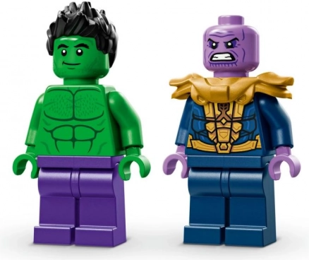 - 2 minifigurer: Hulk med aftagelig hjelm og Thanos med Tesseract og Infinity-handsken.