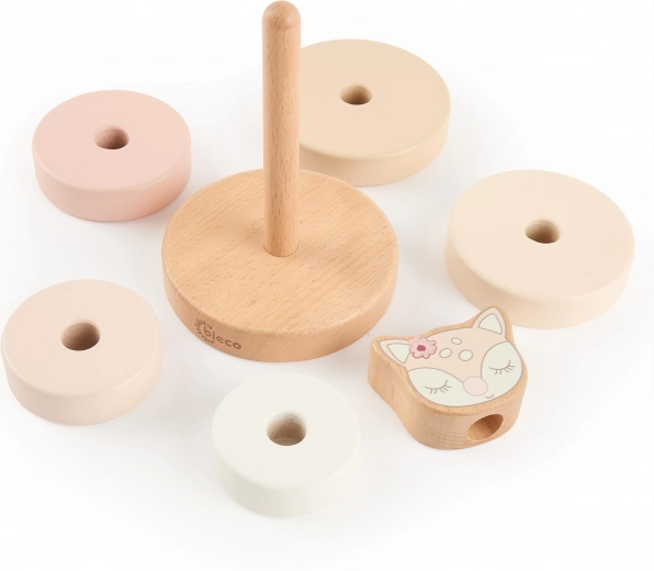Denne stablepyramide i blide farver kombinerer børnevenligt design med et robust, naturligt materiale. Delene er tilpasset små hænder, så børn nemt kan håndtere dem og samtidig træne tålmodighed og logisk tænkning.