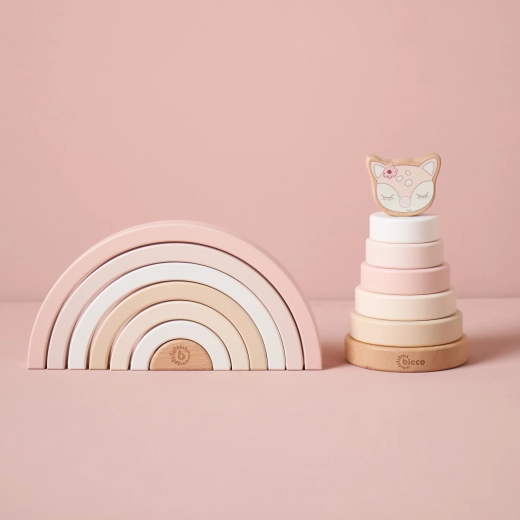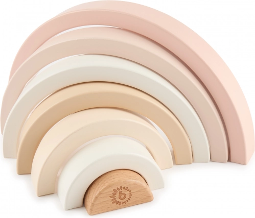 Denne minimalistiske træregnbue bliver både en yndlingslegeting og et designelement på børneværelset. Børn kan stable buerne, sortere, bygge broer og tunneler eller bruge dem som små huse og indhegninger til figurer. De enkle former stimulerer fantasien og selvstændig leg.