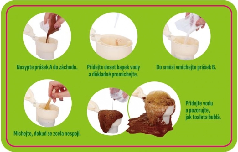 Legetøjet Glumi slim – toileteksplosion bringer en enkel og samtidig medrivende attraktion til enhver fest eller en helt almindelig eftermiddag. Ved at blande det medfølgende pulver med vand skaber du en blanding, der ved aktivering forårsager en sjov eksplosion – vandet sprøjter opad og sørger for buldrende latter.