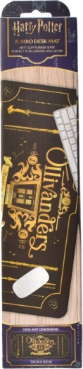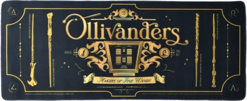 Stilfuldt spilleunderlag med motivet HARRY POTTER – Ollivanders i en elegant sort‑guld kombination. Den store størrelse 80 × 30 cm giver plads til både tastatur og mus, mens den skridsikre underside sikrer stabilitet ved både arbejde og spil.