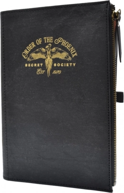 Hold dine noter, idéer og lister lige ved hånden. Denne premium-notesbog i det kompakte A5-format tilbyder et robust omslag med lynlås, som beskytter siderne og småt tilbehør. Den sorte overflade med eksklusivt gyldent tryk “Order of the Phoenix Secret Society” vil glæde enhver fan af Harry Potter-universet og give dine noter et magisk præg.
