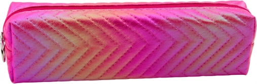 Dette penalhus byder på et stilfuldt look med metallic effekt i lyserøde-guld nuancer og et unikt æblemønster.